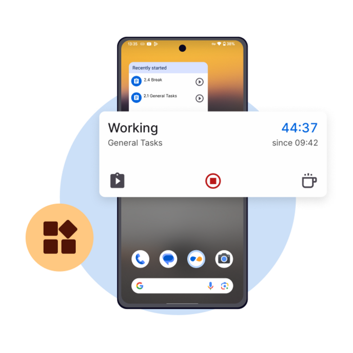 Mit unseren Widgets für Android-Smartphones und Tablets behalten Sie Ihre Arbeitszeit jederzeit im Blick.
