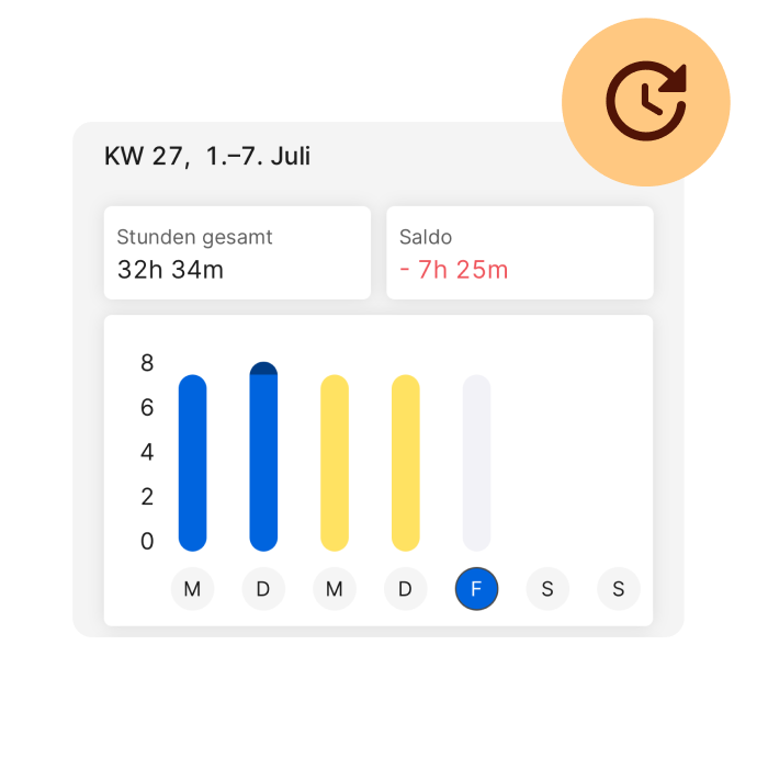 Behalten Sie Ihren wöchentlichen Arbeitszeitsaldo im Blick – übersichtlich dargestellt im Balkendiagramm.