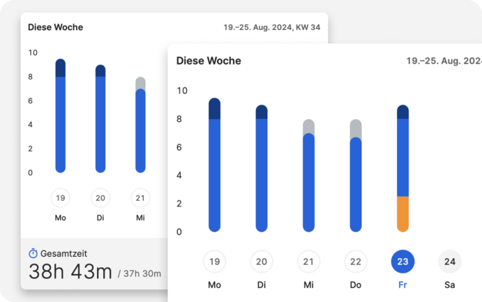 Alle Arbeitszeiten und Abwesenheiten werden automatisch auf Basis Ihrer Vorgaben berechnet, können ausgewertet und exportiert werden.